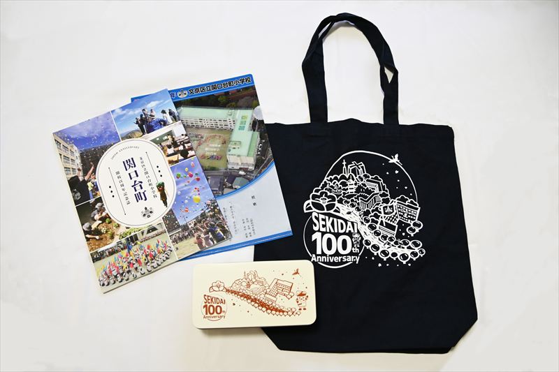 記念式典の来賓及び児童に対し、記念誌、クリアファイル、手提げ、祝菓子を制作し配布いたしました。